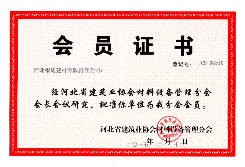 河北銀通建材有限責(zé)任公司在2015年二月十二日正式成為河北省建筑業(yè)協(xié)會會員,河北銀通建材有限責(zé)任公司專業(yè)生產(chǎn)保溫材料,YT無機(jī)保溫材料,YT保溫材料,YT無機(jī)活性墻體保溫材料,YT無機(jī)活性墻體保溫隔熱材料,YT無機(jī)活性保溫材料,YT無機(jī)保溫砂漿,YT墻體保溫材料,YT無機(jī)無網(wǎng)保溫材料,無機(jī)活性保溫材料等各種保溫材料。http://www.armeka.com.cn